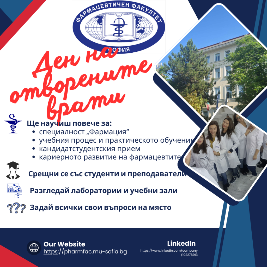 Събитието е насочено към кандидат-студенти, ученици, родители и всички, които проявяват интерес към обучението и професионалната реализация в областта на фармацията.